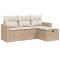 Salon de jardin avec coussins 4 pcs beige résine tresséeCet ensemble de canapés de jardin est le complément parfait de votre arrière-cour, terrasse ou patio, offrant un espace confortable et accueillant pour discuter avec la famille et les amis ou simplement se détendre et profiter de l'extérieur. Matériau durable : la résine tressée, également connue sous le nom de poly rotin, est un matériau synthétique solide et nécessitant peu d'entretien qui ressemble au rotin naturel. Il est léger, facile à nettoyer et couramment utilisé pour les meubles d'extérieur en raison de sa durabilité et de ses propriétés de résistance aux intempéries.Expérience d'assise confortable : ce mobilier d'extérieur, doté de coussins épais, offre une expérience d'assise confortable.Housse amovible et lavable : ces coussins de siège sont dotés de housses amovibles pour un lavage et un entretien faciles.Cadre robuste et stable : le cadre en acier enduit de poudre assure la solidité et la stabilité du meuble de jardin pour une utilisation quotidienne à l'extérieur.Conception modulaire : cet ensemble de meubles d'extérieur a une conception modulaire, ce qui le rend complètement flexible et facile à déplacer, afin que vous puissiez créer un agencement de meubles d'extérieur personnalisé. Bon à savoir :Pour que vos meubles d'extérieur restent beaux, nous vous recommandons de les protéger avec une housse imperméable.