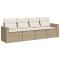 Salon de jardin avec coussins 4 pcs beige résine tresséeCet ensemble de canapés de jardin est le complément parfait de votre arrière-cour, terrasse ou patio, offrant un espace confortable et accueillant pour discuter avec la famille et les amis ou simplement se détendre et profiter de l'extérieur. Matériau durable : la résine tressée, également connue sous le nom de poly rotin, est un matériau synthétique solide et nécessitant peu d'entretien qui ressemble au rotin naturel. Il est léger, facile à nettoyer et couramment utilisé pour les meubles d'extérieur en raison de sa durabilité et de ses propriétés de résistance aux intempéries. Fonction de rangement avec sac résistant à l'eau : chaque siège de jardin dispose d'un espace de rangement sous l'assise, complété par un sac résistant à l'eau pour ranger les coussins, les jouets et d'autres objets. Les sacs intérieurs sont dotés d'un couvercle et peuvent être solidement fixés aux sièges à l'aide de bandes auto-agrippantes pour plus de stabilité. Expérience d'assise confortable : ce mobilier d'extérieur, doté de coussins épais, offre une expérience d'assise confortable. Housse amovible et lavable : ces coussins de siège sont dotés de housses amovibles pour un lavage et un entretien faciles. Conception modulaire : cet ensemble de meubles d'extérieur a une conception modulaire, ce qui le rend complètement flexible et facile à déplacer, afin que vous puissiez créer un agencement de meubles d'extérieur personnalisé. Bon à savoir : Pour que vos meubles d'extérieur restent beaux, nous vous recommandons de les protéger avec une housse imperméable. ,