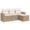 Salon de jardin avec coussins 4 pcs beige résine tresséeCet ensemble de canapés de jardin est le complément parfait de votre arrière-cour, terrasse ou patio, offrant un espace confortable et accueillant pour discuter avec la famille et les amis ou simplement se détendre et profiter de l'extérieur. Matériau durable : la résine tressée, également connue sous le nom de poly rotin, est un matériau synthétique solide et nécessitant peu d'entretien qui ressemble au rotin naturel. Il est léger, facile à nettoyer et couramment utilisé pour les meubles d'extérieur en raison de sa durabilité et de ses propriétés de résistance aux intempéries.Expérience d'assise confortable : ce mobilier d'extérieur, doté de coussins épais, offre une expérience d'assise confortable. Les larges accoudoirs offrent également un endroit pratique pour garder votre téléphone portable, vos tasses ou d'autres petits objets à portée de main.Housse amovible et lavable : ces coussins de siège sont dotés de housses amovibles pour un lavage et un entretien faciles.Conception modulaire : cet ensemble de meubles d'extérieur a une conception modulaire, ce qui le rend complètement flexible et facile à déplacer, afin que vous puissiez créer un agencement de meubles d'extérieur personnalisé. Bon à savoir :Pour que vos meubles d'extérieur restent beaux, nous vous recommandons de les protéger avec une housse imperméable.