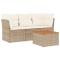 Salon de jardin avec coussins 4 pcs beige résine tresséeCet ensemble de canapés de jardin est le complément parfait de votre arrière-cour, terrasse ou patio, offrant un espace confortable et accueillant pour discuter avec la famille et les amis ou simplement se détendre et profiter de l'extérieur. Matériau durable : la résine tressée, également connue sous le nom de poly rotin, est un matériau synthétique solide et nécessitant peu d'entretien qui ressemble au rotin naturel. Il est léger, facile à nettoyer et couramment utilisé pour les meubles d'extérieur en raison de sa durabilité et de ses propriétés de résistance aux intempéries.Expérience d'assise confortable : ce mobilier d'extérieur, doté de coussins épais, offre une expérience d'assise confortable.Dessus stable et facile à nettoyer : cette table de jardin a un dessus en bois d'acacia robuste, durable et facile à nettoyer avec un chiffon humide.Housse amovible et lavable : ces coussins de siège sont dotés de housses amovibles pour un lavage et un entretien faciles.Conception modulaire : cet ensemble de meubles d'extérieur a une conception modulaire, ce qui le rend complètement flexible et facile à déplacer, afin que vous puissiez créer un agencement de meubles d'extérieur personnalisé. Bon à savoir :Pour que vos meubles d'extérieur restent beaux, nous vous recommandons de les protéger avec une housse imperméable.