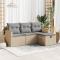 Salon de jardin avec coussins 4 pcs beige résine tresséeCet ensemble de canapés de jardin est le complément parfait de votre arrière-cour, terrasse ou patio, offrant un espace confortable et accueillant pour discuter avec la famille et les amis ou simplement se détendre et profiter de l'extérieur. Matériau durable : la résine tressée, également connue sous le nom de poly rotin, est un matériau synthétique solide et nécessitant peu d'entretien qui ressemble au rotin naturel. Elle est légère, facile à nettoyer et couramment utilisée pour les meubles d'extérieur en raison de sa durabilité et de ses propriétés de résistance aux intempéries.Fonction de rangement avec sac résistant à l'eau : le mobilier de jardin dispose d'un espace de rangement sous l'assise, complété par un sac résistant à l'eau pour ranger coussins, jouets et autres objets. Le sac intérieur peut être solidement fixé au mobilier d'extérieur grâce à des attaches auto-agrippantes pour plus de stabilité.Pouf polyvalent : le tabouret est polyvalent, servant de repose-pieds confortable lorsque vous vous prélassez sur le canapé ou de siège supplémentaire dans votre jardin.Housse amovible et lavable : ces coussins de siège sont dotés de housses amovibles pour un lavage et un entretien faciles.Conception modulaire : cet ensemble de meubles d'extérieur a une conception modulaire, ce qui le rend complètement flexible et facile à déplacer, afin que vous puissiez créer un agencement de meubles d'extérieur personnalisé. Bon à savoir :Pour que vos meubles d'extérieur restent beaux, nous vous recommandons de les protéger avec une housse imperméable.