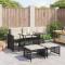 Salon de jardin avec coussins 4 pcs noir résine tressée verreCet ensemble de canapés de jardin est le complément parfait de votre arrière-cour, terrasse ou patio, offrant un espace confortable et accueillant pour discuter avec la famille et les amis ou simplement se détendre et profiter de l'extérieur. Matériau durable : la résine tressée, également connue sous le nom de poly rotin, est un matériau synthétique solide et nécessitant peu d'entretien qui ressemble au rotin naturel. Il est léger, facile à nettoyer et couramment utilisé pour les meubles d'extérieur en raison de sa durabilité et de ses propriétés de résistance aux intempéries. Dessus de table réglable : le dessus de table peut être soulevé pour rendre la table plus haute, ce qui transforme la table d'extérieur d'une table basse à une table de salle à manger. Elle est parfaite pour recevoir des invités ou prendre des repas à l'extérieur. Expérience d'assise confortable : le mobilier d'extérieur, doté de coussins bien rembourrés, offre une expérience d'assise confortable. Housse amovible et lavable : ces coussins de siège sont dotés de housses amovibles pour un lavage et un entretien faciles. Dessus en verre : le dessus de la table d'extérieur est fabriqué en verre trempé solide et durable, ce qui le rend facile à nettoyer avec un chiffon humide et ajoute une touche d'élégance à votre espace extérieur. Bon à savoir : Pour que vos meubles d'extérieur restent beaux, nous vous recommandons de les protéger avec une housse imperméable. Maximum 110 kg par siège. Soyez conscient du risque de feux ouverts et d'autres sources de forte chaleur à proximité du produit. ,