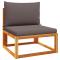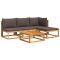 Salon de jardin avec coussins 5 pcs Bois d'acacia solideCet ensemble de canapés de jardin est le complément parfait de votre arrière-cour, terrasse ou patio, offrant un espace confortable et accueillant pour discuter avec la famille et les amis ou simplement se détendre et profiter de l'extérieur. Cadre robuste et stable : le bois d'acacia massif est connu pour sa solidité et sa durabilité. Ses couleurs variées et ses grains uniques lui confèrent un aspect attrayant. Sa stabilité et sa résistance aux intempéries en font un matériau idéal pour la fabrication de meubles d'intérieur et d'extérieur. Expérience d'assise confortable : ce mobilier d'extérieur, doté de coussins épais, offre une expérience d'assise confortable.Bonne ventilation et prévention de l'accumulation d'eau : la conception à lattes favorise une circulation optimale de l'air et empêche efficacement l'accumulation d'eau, assurant ainsi un mobilier de jardin sec et confortable.Housse amovible et lavable : ces coussins de siège sont dotés de housses amovibles pour un lavage et un entretien faciles.Conception modulaire : ce meuble d'extérieur a une conception modulaire, ce qui le rend complètement flexible et facile à déplacer, afin que vous puissiez créer un agencement de meubles d'extérieur personnalisé. Bon à savoir :Pour que vos meubles d'extérieur restent beaux, nous vous recommandons de les protéger avec une housse imperméable. Maximum 110 kg par siège. Soyez conscient du risque de feu ouvert et d'autres sources de forte chaleur à proximité de l'appareil.