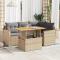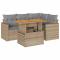Salon de jardin avec coussins 5 pcs beige résine tressée acaciaCet ensemble de canapés de jardin est le complément parfait de votre arrière-cour, terrasse ou patio, offrant un espace confortable et accueillant pour discuter avec la famille et les amis ou simplement se détendre et profiter de l'extérieur.Matériau durable : la résine tressée, également connue sous le nom de poly rotin, est un matériau synthétique solide et nécessitant peu d'entretien qui ressemble au rotin naturel. Elle est légère, facile à nettoyer et couramment utilisée pour les meubles d'extérieur en raison de sa durabilité et de ses propriétés de résistance aux intempéries.Fonction de rangement avec sac résistant à l'eau : chaque siège de jardin dispose d'un espace de rangement sous l'assise, complété par un sac résistant à l'eau pour ranger les coussins, les jouets et d'autres objets. Les sacs intérieurs sont dotés d'un couvercle et peuvent être solidement fixés aux sièges à l'aide de bandes auto-agrippantes pour plus de stabilité.Housse amovible et lavable : ces coussins de siège sont dotés de housses amovibles pour un lavage et un entretien faciles.Conception modulaire : cet ensemble de meubles d'extérieur a une conception modulaire, ce qui le rend complètement flexible et facile à déplacer, afin que vous puissiez créer un agencement de meubles d'extérieur personnalisé.Bon à savoir :Pour que vos meubles d'extérieur restent beaux, nous vous recommandons de les protéger avec une housse imperméable.