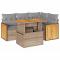 Salon de jardin avec coussins 5 pcs beige résine tressée acaciaCet ensemble de canapés de jardin est le complément parfait de votre arrière-cour, terrasse ou patio, offrant un espace confortable et accueillant pour discuter avec la famille et les amis ou simplement se détendre et profiter de l'extérieur. Matériau durable : la résine tressée, également connue sous le nom de poly rotin, est un matériau synthétique solide et nécessitant peu d'entretien qui ressemble au rotin naturel. Elle est légère, facile à nettoyer et couramment utilisée pour les meubles d'extérieur en raison de sa durabilité et de ses propriétés de résistance aux intempéries. Fonction de rangement avec sac résistant à l'eau : chaque siège de jardin dispose d'un espace de rangement sous l'assise, complété par un sac résistant à l'eau pour ranger les coussins, les jouets et d'autres objets. Les sacs intérieurs sont dotés d'un couvercle et peuvent être solidement fixés aux sièges à l'aide de bandes auto-agrippantes pour plus de stabilité. Housse amovible et lavable : ces coussins de siège sont dotés de housses amovibles pour un lavage et un entretien faciles. Conception modulaire : cet ensemble de meubles d'extérieur a une conception modulaire, ce qui le rend complètement flexible et facile à déplacer, afin que vous puissiez créer un agencement de meubles d'extérieur personnalisé. Bon à savoir : Pour que vos meubles d'extérieur restent beaux, nous vous recommandons de les protéger avec une housse imperméable.