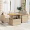 Salon de jardin avec coussins 5 pcs beige résine tressée acaciaCet ensemble de canapés de jardin est le complément parfait de votre arrière-cour, terrasse ou patio, offrant un espace confortable et accueillant pour discuter avec la famille et les amis ou simplement se détendre et profiter de l'extérieur. Matériau durable : la résine tressée, également connue sous le nom de poly rotin, est un matériau synthétique solide et nécessitant peu d'entretien qui ressemble au rotin naturel. Elle est légère, facile à nettoyer et couramment utilisée pour les meubles d'extérieur en raison de sa durabilité et de ses propriétés de résistance aux intempéries. Fonction de rangement avec sac résistant à l'eau : chaque siège de jardin dispose d'un espace de rangement sous l'assise, complété par un sac résistant à l'eau pour ranger les coussins, les jouets et d'autres objets. Les sacs intérieurs sont dotés d'un couvercle et peuvent être solidement fixés aux sièges à l'aide de bandes auto-agrippantes pour plus de stabilité. Housse amovible et lavable : ces coussins de siège sont dotés de housses amovibles pour un lavage et un entretien faciles. Conception modulaire : cet ensemble de meubles d'extérieur a une conception modulaire, ce qui le rend complètement flexible et facile à déplacer, afin que vous puissiez créer un agencement de meubles d'extérieur personnalisé. Bon à savoir : Pour que vos meubles d'extérieur restent beaux, nous vous recommandons de les protéger avec une housse imperméable.
