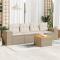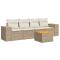 Salon de jardin avec coussins 5 pcs beige résine tresséeCet ensemble de canapés de jardin est le complément parfait de votre arrière-cour, terrasse ou patio, offrant un espace confortable et accueillant pour discuter avec la famille et les amis ou simplement se détendre et profiter de l'extérieur. Matériau durable : la résine tressée, également connue sous le nom de poly rotin, est un matériau synthétique solide et nécessitant peu d'entretien qui ressemble au rotin naturel. Il est léger, facile à nettoyer et couramment utilisé pour les meubles d'extérieur en raison de sa durabilité et de ses propriétés de résistance aux intempéries.Dessus stable et facile à nettoyer : cette table de jardin a un dessus en bois d'acacia robuste, durable et facile à nettoyer avec un chiffon humide. Expérience d'assise confortable : ce mobilier d'extérieur, doté de coussins épais, offre une expérience d'assise confortable. Housse amovible et lavable : ces coussins de siège sont dotés de housses amovibles pour un lavage et un entretien faciles.Conception modulaire : cet ensemble de meubles d'extérieur a une conception modulaire, ce qui le rend complètement flexible et facile à déplacer, afin que vous puissiez créer un agencement de meubles d'extérieur personnalisé. Bon à savoir :Pour que vos meubles d'extérieur restent beaux, nous vous recommandons de les protéger avec une housse imperméable.