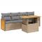 Salon de jardin avec coussins 5 pcs beige résine tresséeCet ensemble de canapés de jardin est le complément parfait de votre arrière-cour, terrasse ou patio, offrant un espace confortable et accueillant pour discuter avec la famille et les amis ou simplement se détendre et profiter de l'extérieur. Matériau durable : la résine tressée, également connue sous le nom de poly rotin, est un matériau synthétique solide et nécessitant peu d'entretien qui ressemble au rotin naturel. Il est léger, facile à nettoyer et couramment utilisé pour les meubles d'extérieur en raison de sa durabilité et de ses propriétés de résistance aux intempéries.Dessus de table réglable : le dessus de table peut être soulevé pour rendre la table plus haute, ce qui transforme la table d'extérieur d'une table basse à une table de salle à manger. Elle est parfaite pour recevoir des invités ou prendre des repas à l'extérieur.Housse amovible et lavable : ces coussins de siège sont dotés de housses amovibles pour un lavage et un entretien faciles.Conception modulaire : cet ensemble de meubles d'extérieur a une conception modulaire, ce qui le rend complètement flexible et facile à déplacer, afin que vous puissiez créer un agencement de meubles d'extérieur personnalisé. Bon à savoir :Pour que vos meubles d'extérieur restent beaux, nous vous recommandons de les protéger avec une housse imperméable.