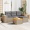 Salon de jardin avec coussins 5 pcs beige résine tresséeCet ensemble de canapés de jardin est le complément parfait de votre arrière-cour, terrasse ou patio, offrant un espace confortable et accueillant pour discuter avec la famille et les amis ou simplement se détendre et profiter de l'extérieur. Matériau durable : la résine tressée, également connue sous le nom de poly rotin, est un matériau synthétique solide et nécessitant peu d'entretien qui ressemble au rotin naturel. Il est léger, facile à nettoyer et couramment utilisé pour les meubles d'extérieur en raison de sa durabilité et de ses propriétés de résistance aux intempéries. Fonction de rangement avec sac résistant à l'eau : chaque siège de jardin dispose d'un espace de rangement sous l'assise, complété par un sac résistant à l'eau pour ranger les coussins, les jouets et d'autres objets. Les sacs intérieurs sont dotés d'un couvercle et peuvent être solidement fixés aux sièges à l'aide de bandes auto-agrippantes pour plus de stabilité. Dessus stable et facile à nettoyer : cette table de jardin a un dessus en bois d'acacia robuste, durable et facile à nettoyer avec un chiffon humide. Expérience d'assise confortable : ce mobilier d'extérieur, doté de coussins épais, offre une expérience d'assise confortable. Conception modulaire : cet ensemble de meubles d'extérieur a une conception modulaire, ce qui le rend complètement flexible et facile à déplacer, afin que vous puissiez créer un agencement de meubles d'extérieur personnalisé. Bon à savoir :Pour que vos meubles d'extérieur restent beaux, nous vous recommandons de les protéger avec une housse imperméable.