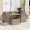 Salon de jardin avec coussins 5 pcs beige résine tresséeCet ensemble de canapés de jardin est le complément parfait de votre arrière-cour, terrasse ou patio, offrant un espace confortable et accueillant pour discuter avec la famille et les amis ou simplement se détendre et profiter de l'extérieur. Matériau durable : la résine tressée, également connue sous le nom de poly rotin, est un matériau synthétique solide et nécessitant peu d'entretien qui ressemble au rotin naturel. Elle est légère, facile à nettoyer et couramment utilisée pour les meubles d'extérieur en raison de sa durabilité et de ses propriétés de résistance aux intempéries.Fonction de rangement avec sac résistant à l'eau : le mobilier de jardin dispose d'un espace de rangement sous l'assise, complété par un sac résistant à l'eau pour ranger coussins, jouets et autres objets. Le sac intérieur peut être solidement fixé au mobilier d'extérieur grâce à des attaches auto-agrippantes pour plus de stabilité.Dessus de table réglable : le dessus de table peut être soulevé pour rendre la table plus haute, ce qui transforme la table d'extérieur d'une table basse à une table de salle à manger. Elle est parfaite pour recevoir des invités ou prendre des repas à l'extérieur.Housse amovible et lavable : ces coussins de siège sont dotés de housses amovibles pour un lavage et un entretien faciles.Conception modulaire : cet ensemble de meubles d'extérieur a une conception modulaire, ce qui le rend complètement flexible et facile à déplacer, afin que vous puissiez créer un agencement de meubles d'extérieur personnalisé. Bon à savoir :Pour que vos meubles d'extérieur restent beaux, nous vous recommandons de les protéger avec une housse imperméable.