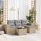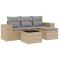 Salon de jardin avec coussins 5 pcs beige résine tresséeCet ensemble de canapés de jardin est le complément parfait de votre arrière-cour, terrasse ou patio, offrant un espace confortable et accueillant pour discuter avec la famille et les amis ou simplement se détendre et profiter de l'extérieur. Matériau durable : la résine tressée, également connue sous le nom de poly rotin, est un matériau synthétique solide et nécessitant peu d'entretien qui ressemble au rotin naturel. Il est léger, facile à nettoyer et couramment utilisé pour les meubles d'extérieur en raison de sa durabilité et de ses propriétés de résistance aux intempéries.Fonction de rangement avec sac résistant à l'eau : le mobilier de jardin dispose d'un espace de rangement sous l'assise, complété par un sac résistant à l'eau pour ranger coussins, jouets et autres objets. Le sac intérieur peut être solidement fixé au mobilier d'extérieur grâce à des attaches auto-agrippantes pour plus de stabilité.Dessus en verre : le dessus de la table d'extérieur est fabriqué en verre trempé solide et durable, ce qui le rend facile à nettoyer avec un chiffon humide et ajoute une touche d'élégance à votre espace extérieur.Housse amovible et lavable : ces coussins de siège sont dotés de housses amovibles pour un lavage et un entretien faciles.Conception modulaire : cet ensemble de meubles d'extérieur a une conception modulaire, ce qui le rend complètement flexible et facile à déplacer, afin que vous puissiez créer un agencement de meubles d'extérieur personnalisé. Bon à savoir :Pour que vos meubles d'extérieur restent beaux, nous vous recommandons de les protéger avec une housse imperméable.