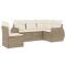 Salon de jardin avec coussins 5 pcs beige résine tresséeCet ensemble de canapés de jardin est le complément parfait de votre arrière-cour, terrasse ou patio, offrant un espace confortable et accueillant pour discuter avec la famille et les amis ou simplement se détendre et profiter de l'extérieur. Matériau durable : la résine tressée, également connue sous le nom de poly rotin, est un matériau synthétique solide et nécessitant peu d'entretien qui ressemble au rotin naturel. Il est léger, facile à nettoyer et couramment utilisé pour les meubles d'extérieur en raison de sa durabilité et de ses propriétés de résistance aux intempéries.Fonction de rangement avec sac résistant à l'eau : chaque siège de jardin dispose d'un espace de rangement sous l'assise, complété par un sac résistant à l'eau pour ranger les coussins, les jouets et d'autres objets. Les sacs intérieurs sont dotés d'un couvercle et peuvent être solidement fixés aux sièges à l'aide de bandes auto-agrippantes pour plus de stabilité.Housse amovible et lavable : ces coussins de siège sont dotés de housses amovibles pour un lavage et un entretien faciles.Conception modulaire : cet ensemble de meubles d'extérieur a une conception modulaire, ce qui le rend complètement flexible et facile à déplacer, afin que vous puissiez créer un agencement de meubles d'extérieur personnalisé. Bon à savoir :Pour que vos meubles d'extérieur restent beaux, nous vous recommandons de les protéger avec une housse imperméable.