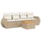 Salon de jardin avec coussins 5 pcs beige résine tresséeCet ensemble de canapés de jardin est le complément parfait de votre arrière-cour, terrasse ou patio, offrant un espace confortable et accueillant pour discuter avec la famille et les amis ou simplement se détendre et profiter de l'extérieur. Matériau durable : la résine tressée, également connue sous le nom de poly rotin, est un matériau synthétique solide et nécessitant peu d'entretien qui ressemble au rotin naturel. Il est léger, facile à nettoyer et couramment utilisé pour les meubles d'extérieur en raison de sa durabilité et de ses propriétés de résistance aux intempéries.Dessus stable et facile à nettoyer : cette table de jardin a un dessus en bois d'acacia robuste, durable et facile à nettoyer avec un chiffon humide. Fonction de rangement avec sac résistant à l'eau : chaque siège de jardin dispose d'un espace de rangement sous l'assise, complété par un sac résistant à l'eau pour ranger les coussins, les jouets et d'autres objets. Les sacs intérieurs sont dotés d'un couvercle et peuvent être solidement fixés aux sièges à l'aide de bandes auto-agrippantes pour plus de stabilité.Expérience d'assise confortable : ce mobilier d'extérieur, doté de coussins épais, offre une expérience d'assise confortable.Conception modulaire : cet ensemble de meubles d'extérieur a une conception modulaire, ce qui le rend complètement flexible et facile à déplacer, afin que vous puissiez créer un agencement de meubles d'extérieur personnalisé. Bon à savoir :Pour que vos meubles d'extérieur restent beaux, nous vous recommandons de les protéger avec une housse imperméable.