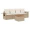 Salon de jardin avec coussins 5 pcs beige résine tresséeCet ensemble de canapés de jardin est le complément parfait de votre arrière-cour, terrasse ou patio, offrant un espace confortable et accueillant pour discuter avec la famille et les amis ou simplement se détendre et profiter de l'extérieur. Matériau durable : la résine tressée, également connue sous le nom de poly rotin, est un matériau synthétique solide et nécessitant peu d'entretien qui ressemble au rotin naturel. Il est léger, facile à nettoyer et couramment utilisé pour les meubles d'extérieur en raison de sa durabilité et de ses propriétés de résistance aux intempéries.Fonction de rangement avec sac résistant à l'eau : chaque siège de jardin dispose d'un espace de rangement sous l'assise, complété par un sac résistant à l'eau pour ranger les coussins, les jouets et d'autres objets. Les sacs intérieurs sont dotés d'un couvercle et peuvent être solidement fixés aux sièges à l'aide de bandes auto-agrippantes pour plus de stabilité.Dessus stable et facile à nettoyer : cette table de jardin a un dessus en bois d'acacia robuste, durable et facile à nettoyer avec un chiffon humide.Table d'appoint pratique : ce mobilier d'extérieur comprend des tables d'appoint pliables avec un ressort à gaz sur les accoudoirs, offrant des endroits pratiques pour garder vos essentiels à portée de main.Conception modulaire : cet ensemble de meubles d'extérieur a une conception modulaire, ce qui le rend complètement flexible et facile à déplacer, afin que vous puissiez créer un agencement de meubles d'extérieur personnalisé. Bon à savoir :Pour que vos meubles d'extérieur restent beaux, nous vous recommandons de les protéger avec une housse imperméable.