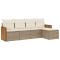 Salon de jardin avec coussins 5 pcs beige résine tresséeCet ensemble de canapés de jardin est le complément parfait de votre arrière-cour, terrasse ou patio, offrant un espace confortable et accueillant pour discuter avec la famille et les amis ou simplement se détendre et profiter de l'extérieur. Matériau durable : la résine tressée, également connue sous le nom de poly rotin, est un matériau synthétique solide et nécessitant peu d'entretien qui ressemble au rotin naturel. Il est léger, facile à nettoyer et couramment utilisé pour les meubles d'extérieur en raison de sa durabilité et de ses propriétés de résistance aux intempéries.Expérience d'assise confortable : ce mobilier d'extérieur, doté de coussins épais, offre une expérience d'assise confortable.Housse amovible et lavable : ces coussins de siège sont dotés de housses amovibles pour un lavage et un entretien faciles.Conception modulaire : cet ensemble de meubles d'extérieur a une conception modulaire, ce qui le rend complètement flexible et facile à déplacer, afin que vous puissiez créer un agencement de meubles d'extérieur personnalisé. Bon à savoir :Pour que vos meubles d'extérieur restent beaux, nous vous recommandons de les protéger avec une housse imperméable.