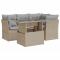 Salon de jardin avec coussins 5 pcs beige résine tresséeCet ensemble de canapés de jardin est le complément parfait de votre arrière-cour, terrasse ou patio, offrant un espace confortable et accueillant pour discuter avec la famille et les amis ou simplement se détendre et profiter de l'extérieur. Matériau durable : la résine tressée, également connue sous le nom de poly rotin, est un matériau synthétique solide et nécessitant peu d'entretien qui ressemble au rotin naturel. Elle est légère, facile à nettoyer et couramment utilisée pour les meubles d'extérieur en raison de sa durabilité et de ses propriétés de résistance aux intempéries.Fonction de rangement avec sac résistant à l'eau : chaque siège de jardin dispose d'un espace de rangement sous l'assise, complété par un sac résistant à l'eau pour ranger les coussins, les jouets et d'autres objets. Le sac intérieur est doté d'un couvercle et peut être solidement fixé au siège à l'aide de bandes auto-agrippantes pour plus de stabilité.Dessus de table réglable : le dessus de table peut être soulevé pour rendre la table plus haute, ce qui transforme la table d'extérieur d'une table basse à une table de salle à manger. Elle est parfaite pour recevoir des invités ou prendre des repas à l'extérieur.Housse amovible et lavable : ces coussins de siège sont dotés de housses amovibles pour un lavage et un entretien faciles.Cadre robuste et stable : le cadre en acier enduit de poudre est solide, stable, durable et résistant à la corrosion et aux intempéries, ce qui garantit des performances durables. Bon à savoir :Pour que vos meubles d'extérieur restent beaux, nous vous recommandons de les protéger avec une housse imperméable.