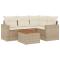 Salon de jardin avec coussins 5 pcs beige résine tresséeCet ensemble de canapés de jardin est le complément parfait de votre arrière-cour, terrasse ou patio, offrant un espace confortable et accueillant pour discuter avec la famille et les amis ou simplement se détendre et profiter de l'extérieur. Matériau durable : la résine tressée, également connue sous le nom de poly rotin, est un matériau synthétique solide et nécessitant peu d'entretien qui ressemble au rotin naturel. Il est léger, facile à nettoyer et couramment utilisé pour les meubles d'extérieur en raison de sa durabilité et de ses propriétés de résistance aux intempéries.Fonction de rangement avec sac résistant à l'eau : chaque siège de jardin dispose d'un espace de rangement sous l'assise, complété par un sac résistant à l'eau pour ranger les coussins, les jouets et d'autres objets. Les sacs intérieurs sont dotés d'un couvercle et peuvent être solidement fixés aux sièges à l'aide de bandes auto-agrippantes pour plus de stabilité.Dessus stable et facile à nettoyer : cette table de jardin a un dessus en bois d'acacia robuste, durable et facile à nettoyer avec un chiffon humide.Housse amovible et lavable : ces coussins de siège sont dotés de housses amovibles pour un lavage et un entretien faciles.Conception modulaire : cet ensemble de meubles d'extérieur a une conception modulaire, ce qui le rend complètement flexible et facile à déplacer, afin que vous puissiez créer un agencement de meubles d'extérieur personnalisé. Bon à savoir :Pour que vos meubles d'extérieur restent beaux, nous vous recommandons de les protéger avec une housse imperméable.