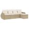 Salon de jardin avec coussins 5 pcs beige résine tresséeCet ensemble de canapés de jardin est le complément parfait de votre arrière-cour, terrasse ou patio, offrant un espace confortable et accueillant pour discuter avec la famille et les amis ou simplement se détendre et profiter de l'extérieur. Matériau durable : la résine tressée, également connue sous le nom de poly rotin, est un matériau synthétique solide et nécessitant peu d'entretien qui ressemble au rotin naturel. Il est léger, facile à nettoyer et couramment utilisé pour les meubles d'extérieur en raison de sa durabilité et de ses propriétés de résistance aux intempéries. Expérience d'assise confortable : ce mobilier d'extérieur, doté de coussins épais, offre une expérience d'assise confortable.Housse amovible et lavable : ces coussins de siège sont dotés de housses amovibles pour un lavage et un entretien faciles.Conception modulaire : cet ensemble de meubles d'extérieur a une conception modulaire, ce qui le rend complètement flexible et facile à déplacer, afin que vous puissiez créer un agencement de meubles d'extérieur personnalisé.Cadre robuste et stable : le cadre en acier enduit de poudre assure la solidité et la stabilité du meuble de jardin pour une utilisation quotidienne à l'extérieur. Bon à savoir :Pour que vos meubles d'extérieur restent beaux, nous vous recommandons de les protéger avec une housse imperméable.