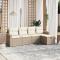 Salon de jardin avec coussins 5 pcs beige résine tresséeCet ensemble de canapés de jardin est le complément parfait de votre arrière-cour, terrasse ou patio, offrant un espace confortable et accueillant pour discuter avec la famille et les amis ou simplement se détendre et profiter de l'extérieur. Matériau durable : la résine tressée, également connue sous le nom de poly rotin, est un matériau synthétique solide et nécessitant peu d'entretien qui ressemble au rotin naturel. Il est léger, facile à nettoyer et couramment utilisé pour les meubles d'extérieur en raison de sa durabilité et de ses propriétés de résistance aux intempéries.Expérience d'assise confortable : ce mobilier d'extérieur, doté de coussins épais, offre une expérience d'assise confortable.Housse amovible et lavable : ces coussins de siège sont dotés de housses amovibles pour un lavage et un entretien faciles.Cadre robuste et stable : le cadre en acier enduit de poudre assure la solidité et la stabilité du meuble de jardin pour une utilisation quotidienne à l'extérieur.Conception modulaire : cet ensemble de meubles d'extérieur a une conception modulaire, ce qui le rend complètement flexible et facile à déplacer, afin que vous puissiez créer un agencement de meubles d'extérieur personnalisé. Bon à savoir :Pour que vos meubles d'extérieur restent beaux, nous vous recommandons de les protéger avec une housse imperméable.