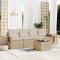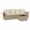 Salon de jardin avec coussins 5 pcs beige résine tresséeCet ensemble de canapés de jardin est le complément parfait de votre arrière-cour, terrasse ou patio, offrant un espace confortable et accueillant pour discuter avec la famille et les amis ou simplement se détendre et profiter de l'extérieur. Matériau durable : la résine tressée, également connue sous le nom de poly rotin, est un matériau synthétique solide et nécessitant peu d'entretien qui ressemble au rotin naturel. Il est léger, facile à nettoyer et couramment utilisé pour les meubles d'extérieur en raison de sa durabilité et de ses propriétés de résistance aux intempéries.Dessus en verre : le dessus de la table d'extérieur est fabriqué en verre trempé solide et durable, ce qui le rend facile à nettoyer avec un chiffon humide et ajoute une touche d'élégance à votre espace extérieur. Table d'appoint pratique : ce mobilier d'extérieur comprend des tables d'appoint pliables avec un ressort à gaz sur les accoudoirs, offrant des endroits pratiques pour garder vos essentiels à portée de main. Expérience d'assise confortable : ce mobilier d'extérieur, doté de coussins épais, offre une expérience d'assise confortable.Conception modulaire : cet ensemble de meubles d'extérieur a une conception modulaire, ce qui le rend complètement flexible et facile à déplacer, afin que vous puissiez créer un agencement de meubles d'extérieur personnalisé. Bon à savoir :Pour que vos meubles d'extérieur restent beaux, nous vous recommandons de les protéger avec une housse imperméable.