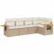 Salon de jardin avec coussins 5 pcs beige résine tresséeCet ensemble de canapés de jardin est le complément parfait de votre arrière-cour, terrasse ou patio, offrant un espace confortable et accueillant pour discuter avec la famille et les amis ou simplement se détendre et profiter de l'extérieur. Matériau durable : la résine tressée, également connue sous le nom de poly rotin, est un matériau synthétique solide et nécessitant peu d'entretien qui ressemble au rotin naturel. Il est léger, facile à nettoyer et couramment utilisé pour les meubles d'extérieur en raison de sa durabilité et de ses propriétés de résistance aux intempéries.Fonction de rangement avec sac résistant à l'eau : le mobilier de jardin dispose d'un espace de rangement sous l'assise, complété par un sac résistant à l'eau pour ranger coussins, jouets et autres objets. Le sac intérieur peut être solidement fixé au mobilier d'extérieur grâce à des attaches auto-agrippantes pour plus de stabilité.Table d'appoint pratique : ce mobilier d'extérieur comprend une table d'appoint pliable avec un ressort à gaz sur les accoudoirs, offrant un endroit pratique pour garder vos essentiels à portée de main.Housse amovible et lavable : ces coussins de siège sont dotés de housses amovibles pour un lavage et un entretien faciles.Conception modulaire : cet ensemble de meubles d'extérieur a une conception modulaire, ce qui le rend complètement flexible et facile à déplacer, afin que vous puissiez créer un agencement de meubles d'extérieur personnalisé. Bon à savoir :Pour que vos meubles d'extérieur restent beaux, nous vous recommandons de les protéger avec une housse imperméable.