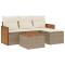 Salon de jardin avec coussins 5 pcs beige résine tresséeCet ensemble de canapés de jardin est le complément parfait de votre arrière-cour, terrasse ou patio, offrant un espace confortable et accueillant pour discuter avec la famille et les amis ou simplement se détendre et profiter de l'extérieur. Matériau durable : la résine tressée, également connue sous le nom de poly rotin, est un matériau synthétique solide et nécessitant peu d'entretien qui ressemble au rotin naturel. Il est léger, facile à nettoyer et couramment utilisé pour les meubles d'extérieur en raison de sa durabilité et de ses propriétés de résistance aux intempéries.Fonction de rangement avec sac résistant à l'eau : le mobilier de jardin dispose d'un espace de rangement sous l'assise, complété par un sac résistant à l'eau pour ranger coussins, jouets et autres objets. Le sac intérieur peut être solidement fixé au mobilier d'extérieur grâce à des attaches auto-agrippantes pour plus de stabilité.Dessus stable et facile à nettoyer : cette table de jardin a un dessus en bois d'acacia robuste, durable et facile à nettoyer avec un chiffon humide.Housse amovible et lavable : ces coussins de siège sont dotés de housses amovibles pour un lavage et un entretien faciles.Conception modulaire : cet ensemble de meubles d'extérieur a une conception modulaire, ce qui le rend complètement flexible et facile à déplacer, afin que vous puissiez créer un agencement de meubles d'extérieur personnalisé. Bon à savoir :Pour que vos meubles d'extérieur restent beaux, nous vous recommandons de les protéger avec une housse imperméable.