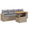 Salon de jardin avec coussins 5 pcs beige résine tresséeCet ensemble de canapés de jardin est le complément parfait de votre arrière-cour, terrasse ou patio, offrant un espace confortable et accueillant pour discuter avec la famille et les amis ou simplement se détendre et profiter de l'extérieur. Matériau durable : la résine tressée, également connue sous le nom de poly rotin, est un matériau synthétique solide et nécessitant peu d'entretien qui ressemble au rotin naturel. Il est léger, facile à nettoyer et couramment utilisé pour les meubles d'extérieur en raison de sa durabilité et de ses propriétés de résistance aux intempéries.Dessus de table réglable : le dessus de table peut être soulevé pour rendre la table plus haute, ce qui transforme la table d'extérieur d'une table basse à une table de salle à manger. Elle est parfaite pour recevoir des invités ou prendre des repas à l'extérieur.Expérience d'assise confortable : ce mobilier d'extérieur, doté de coussins épais, offre une expérience d'assise confortable.Housse amovible et lavable : ces coussins de siège sont dotés de housses amovibles pour un lavage et un entretien faciles.Conception modulaire : cet ensemble de meubles d'extérieur a une conception modulaire, ce qui le rend complètement flexible et facile à déplacer, afin que vous puissiez créer un agencement de meubles d'extérieur personnalisé. Bon à savoir :Pour que vos meubles d'extérieur restent beaux, nous vous recommandons de les protéger avec une housse imperméable.
