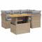 Salon de jardin avec coussins 5 pcs beige résine tresséeCet ensemble de canapés de jardin est le complément parfait de votre arrière-cour, terrasse ou patio, offrant un espace confortable et accueillant pour discuter avec la famille et les amis ou simplement se détendre et profiter de l'extérieur. Matériau durable : la résine tressée, également connue sous le nom de poly rotin, est un matériau synthétique solide et nécessitant peu d'entretien qui ressemble au rotin naturel. Il est léger, facile à nettoyer et couramment utilisé pour les meubles d'extérieur en raison de sa durabilité et de ses propriétés de résistance aux intempéries.Dessus de table réglable : le dessus de table peut être soulevé pour rendre la table plus haute, ce qui transforme la table d'extérieur d'une table basse à une table de salle à manger. Elle est parfaite pour recevoir des invités ou prendre des repas à l'extérieur.Expérience d'assise confortable : ce mobilier d'extérieur, doté de coussins épais, offre une expérience d'assise confortable.Housse amovible et lavable : ces coussins de siège sont dotés de housses amovibles pour un lavage et un entretien faciles.Conception modulaire : cet ensemble de meubles d'extérieur a une conception modulaire, ce qui le rend complètement flexible et facile à déplacer, afin que vous puissiez créer un agencement de meubles d'extérieur personnalisé. Bon à savoir :Pour que vos meubles d'extérieur restent beaux, nous vous recommandons de les protéger avec une housse imperméable.