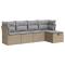 Salon de jardin avec coussins 5 pcs beige résine tresséeCet ensemble de canapés de jardin est le complément parfait de votre arrière-cour, terrasse ou patio, offrant un espace confortable et accueillant pour discuter avec la famille et les amis ou simplement se détendre et profiter de l'extérieur. Matériau durable : la résine tressée, également connue sous le nom de poly rotin, est un matériau synthétique solide et nécessitant peu d'entretien qui ressemble au rotin naturel. Elle est légère, facile à nettoyer et couramment utilisée pour les meubles d'extérieur en raison de sa durabilité et de ses propriétés de résistance aux intempéries.Fonction de rangement avec sac résistant à l'eau : le mobilier de jardin dispose d'un espace de rangement sous l'assise, complété par un sac résistant à l'eau pour ranger coussins, jouets et autres objets. Le sac intérieur peut être solidement fixé au mobilier d'extérieur grâce à des attaches auto-agrippantes pour plus de stabilité.Pouf polyvalent : le tabouret est polyvalent, servant de repose-pieds confortable lorsque vous vous prélassez sur le canapé ou de siège supplémentaire dans votre jardin.Housse amovible et lavable : ces coussins de siège sont dotés de housses amovibles pour un lavage et un entretien faciles.Conception modulaire : cet ensemble de meubles d'extérieur a une conception modulaire, ce qui le rend complètement flexible et facile à déplacer, afin que vous puissiez créer un agencement de meubles d'extérieur personnalisé. Bon à savoir :Pour que vos meubles d'extérieur restent beaux, nous vous recommandons de les protéger avec une housse imperméable.