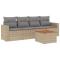 Salon de jardin avec coussins 5 pcs beige résine tresséeCet ensemble de canapés de jardin est le complément parfait de votre arrière-cour, terrasse ou patio, offrant un espace confortable et accueillant pour discuter avec la famille et les amis ou simplement se détendre et profiter de l'extérieur. Matériau durable : la résine tressée, également connue sous le nom de poly rotin, est un matériau synthétique solide et nécessitant peu d'entretien qui ressemble au rotin naturel. Il est léger, facile à nettoyer et couramment utilisé pour les meubles d'extérieur en raison de sa durabilité et de ses propriétés de résistance aux intempéries.Expérience d'assise confortable : ce mobilier d'extérieur, doté de coussins épais, offre une expérience d'assise confortable.Dessus stable et facile à nettoyer : cette table de jardin a un dessus en bois d'acacia robuste, durable et facile à nettoyer avec un chiffon humide.Housse amovible et lavable : ces coussins de siège sont dotés de housses amovibles pour un lavage et un entretien faciles.Conception modulaire : cet ensemble de meubles d'extérieur a une conception modulaire, ce qui le rend complètement flexible et facile à déplacer, afin que vous puissiez créer un agencement de meubles d'extérieur personnalisé. Bon à savoir :Pour que vos meubles d'extérieur restent beaux, nous vous recommandons de les protéger avec une housse imperméable.