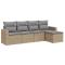 Salon de jardin avec coussins 5 pcs beige résine tresséeCet ensemble de canapés de jardin est le complément parfait de votre arrière-cour, terrasse ou patio, offrant un espace confortable et accueillant pour discuter avec la famille et les amis ou simplement se détendre et profiter de l'extérieur. Matériau durable : la résine tressée, également connue sous le nom de poly rotin, est un matériau synthétique solide et nécessitant peu d'entretien qui ressemble au rotin naturel. Il est léger, facile à nettoyer et couramment utilisé pour les meubles d'extérieur en raison de sa durabilité et de ses propriétés de résistance aux intempéries.Expérience d'assise confortable : ce mobilier d'extérieur, doté de coussins épais, offre une expérience d'assise confortable. Les larges accoudoirs offrent également un endroit pratique pour garder votre téléphone portable, vos tasses ou d'autres petits objets à portée de main.Housse amovible et lavable : ces coussins de siège sont dotés de housses amovibles pour un lavage et un entretien faciles.Conception modulaire : cet ensemble de meubles d'extérieur a une conception modulaire, ce qui le rend complètement flexible et facile à déplacer, afin que vous puissiez créer un agencement de meubles d'extérieur personnalisé. Bon à savoir :Pour que vos meubles d'extérieur restent beaux, nous vous recommandons de les protéger avec une housse imperméable.