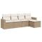 Salon de jardin avec coussins 5 pcs beige résine tresséeCet ensemble de canapés de jardin est le complément parfait de votre arrière-cour, terrasse ou patio, offrant un espace confortable et accueillant pour discuter avec la famille et les amis ou simplement se détendre et profiter de l'extérieur. Matériau durable : la résine tressée, également connue sous le nom de poly rotin, est un matériau synthétique solide et nécessitant peu d'entretien qui ressemble au rotin naturel. Il est léger, facile à nettoyer et couramment utilisé pour les meubles d'extérieur en raison de sa durabilité et de ses propriétés de résistance aux intempéries.Expérience d'assise confortable : ce mobilier d'extérieur, doté de coussins épais, offre une expérience d'assise confortable. Les larges accoudoirs offrent également un endroit pratique pour garder votre téléphone portable, vos tasses ou d'autres petits objets à portée de main.Housse amovible et lavable : ces coussins de siège sont dotés de housses amovibles pour un lavage et un entretien faciles.Conception modulaire : cet ensemble de meubles d'extérieur a une conception modulaire, ce qui le rend complètement flexible et facile à déplacer, afin que vous puissiez créer un agencement de meubles d'extérieur personnalisé. Bon à savoir :Pour que vos meubles d'extérieur restent beaux, nous vous recommandons de les protéger avec une housse imperméable.