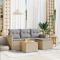 Salon de jardin avec coussins 5 pcs beige résine tresséeCet ensemble de canapés de jardin est le complément parfait de votre arrière-cour, terrasse ou patio, offrant un espace confortable et accueillant pour discuter avec la famille et les amis ou simplement se détendre et profiter de l'extérieur. Matériau durable : la résine tressée, également connue sous le nom de poly rotin, est un matériau synthétique solide et nécessitant peu d'entretien qui ressemble au rotin naturel. Il est léger, facile à nettoyer et couramment utilisé pour les meubles d'extérieur en raison de sa durabilité et de ses propriétés de résistance aux intempéries.Fonction de rangement avec sac résistant à l'eau : le mobilier de jardin dispose d'un espace de rangement sous l'assise, complété par un sac résistant à l'eau pour ranger coussins, jouets et autres objets. Le sac intérieur peut être solidement fixé au mobilier d'extérieur grâce à des attaches auto-agrippantes pour plus de stabilité.Dessus stable et facile à nettoyer : cette table de jardin a un dessus en bois d'acacia robuste, durable et facile à nettoyer avec un chiffon humide.Housse amovible et lavable : ces coussins de siège sont dotés de housses amovibles pour un lavage et un entretien faciles.Conception modulaire : cet ensemble de meubles d'extérieur a une conception modulaire, ce qui le rend complètement flexible et facile à déplacer, afin que vous puissiez créer un agencement de meubles d'extérieur personnalisé. Bon à savoir :Pour que vos meubles d'extérieur restent beaux, nous vous recommandons de les protéger avec une housse imperméable.