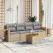 Salon de jardin avec coussins 5 pcs beige résine tresséeCet ensemble de canapés de jardin est le complément parfait de votre arrière-cour, terrasse ou patio, offrant un espace confortable et accueillant pour discuter avec la famille et les amis ou simplement se détendre et profiter de l'extérieur. Matériau durable : la résine tressée, également connue sous le nom de poly rotin, est un matériau synthétique solide et nécessitant peu d'entretien qui ressemble au rotin naturel. Il est léger, facile à nettoyer et couramment utilisé pour les meubles d'extérieur en raison de sa durabilité et de ses propriétés de résistance aux intempéries.Dessus stable et facile à nettoyer : cette table de jardin a un dessus en bois d'acacia robuste, durable et facile à nettoyer avec un chiffon humide.Table d'appoint pratique : ce mobilier d'extérieur comprend une table d'appoint pliable avec un ressort à gaz sur les accoudoirs, offrant un endroit pratique pour garder vos essentiels à portée de main.Housse amovible et lavable : ces coussins de siège sont dotés de housses amovibles pour un lavage et un entretien faciles.Conception modulaire : cet ensemble de meubles d'extérieur a une conception modulaire, ce qui le rend complètement flexible et facile à déplacer, afin que vous puissiez créer un agencement de meubles d'extérieur personnalisé. Bon à savoir :Pour que vos meubles d'extérieur restent beaux, nous vous recommandons de les protéger avec une housse imperméable.
