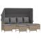 Salon de jardin avec coussins 5 pcs beige résine tresséeCet ensemble de canapés de jardin est le complément parfait de votre arrière-cour, terrasse ou patio, offrant un espace confortable et accueillant pour discuter avec la famille et les amis ou simplement se détendre et profiter de l'extérieur. Matériau durable : la résine tressée, également connue sous le nom de poly rotin, est un matériau synthétique solide et nécessitant peu d'entretien qui ressemble au rotin naturel. Il est léger, facile à nettoyer et couramment utilisé pour les meubles d'extérieur en raison de sa durabilité et de ses propriétés de résistance aux intempéries.Dossier et repose-pied réglables : ce meuble d'extérieur est doté d'un dossier à 3 positions réglables et d'un repose-pieds à 2 positions réglables, ce qui vous permet de trouver facilement la position la plus confortable et la plus appropriée pour la détente.Auvent rétractable : grâce à l'auvent rétractable, vous pouvez créer un environnement extérieur frais et agréable tout au long de la journée.Expérience d'assise confortable : ce mobilier d'extérieur, doté de coussins épais, offre une expérience d'assise confortable.Pouf polyvalent : le tabouret est polyvalent, servant de repose-pieds confortable lorsque vous vous prélassez sur le canapé ou de siège supplémentaire dans votre jardin. Bon à savoir :Pour que vos meubles d'extérieur restent beaux, nous vous recommandons de les protéger avec une housse imperméable.