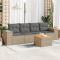 Salon de jardin avec coussins 5 pcs beige résine tresséeCet ensemble de canapés de jardin est le complément parfait de votre arrière-cour, terrasse ou patio, offrant un espace confortable et accueillant pour discuter avec la famille et les amis ou simplement se détendre et profiter de l'extérieur. Matériau durable : la résine tressée, également connue sous le nom de poly rotin, est un matériau synthétique solide et nécessitant peu d'entretien qui ressemble au rotin naturel. Il est léger, facile à nettoyer et couramment utilisé pour les meubles d'extérieur en raison de sa durabilité et de ses propriétés de résistance aux intempéries.Dessus stable et facile à nettoyer : cette table de jardin a un dessus en bois d'acacia robuste, durable et facile à nettoyer avec un chiffon humide. Expérience d'assise confortable : ce mobilier d'extérieur, doté de coussins épais, offre une expérience d'assise confortable. Housse amovible et lavable : ces coussins de siège sont dotés de housses amovibles pour un lavage et un entretien faciles.Conception modulaire : cet ensemble de meubles d'extérieur a une conception modulaire, ce qui le rend complètement flexible et facile à déplacer, afin que vous puissiez créer un agencement de meubles d'extérieur personnalisé. Bon à savoir :Pour que vos meubles d'extérieur restent beaux, nous vous recommandons de les protéger avec une housse imperméable.