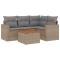 Salon de jardin avec coussins 5 pcs beige résine tresséeCet ensemble de canapés de jardin est le complément parfait de votre arrière-cour, terrasse ou patio, offrant un espace confortable et accueillant pour discuter avec la famille et les amis ou simplement se détendre et profiter de l'extérieur. Matériau durable : la résine tressée, également connue sous le nom de poly rotin, est un matériau synthétique solide et nécessitant peu d'entretien qui ressemble au rotin naturel. Il est léger, facile à nettoyer et couramment utilisé pour les meubles d'extérieur en raison de sa durabilité et de ses propriétés de résistance aux intempéries.Expérience d'assise confortable : ce mobilier d'extérieur, doté de coussins épais, offre une expérience d'assise confortable.Dessus stable et facile à nettoyer : cette table de jardin a un dessus en bois d'acacia robuste, durable et facile à nettoyer avec un chiffon humide.Housse amovible et lavable : ces coussins de siège sont dotés de housses amovibles pour un lavage et un entretien faciles.Conception modulaire : cet ensemble de meubles d'extérieur a une conception modulaire, ce qui le rend complètement flexible et facile à déplacer, afin que vous puissiez créer un agencement de meubles d'extérieur personnalisé. Bon à savoir :Pour que vos meubles d'extérieur restent beaux, nous vous recommandons de les protéger avec une housse imperméable.