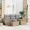 Salon de jardin avec coussins 5 pcs beige résine tresséeCet ensemble de canapés de jardin est le complément parfait de votre arrière-cour, terrasse ou patio, offrant un espace confortable et accueillant pour discuter avec la famille et les amis ou simplement se détendre et profiter de l'extérieur. Matériau durable : la résine tressée, également connue sous le nom de poly rotin, est un matériau synthétique solide et nécessitant peu d'entretien qui ressemble au rotin naturel. Il est léger, facile à nettoyer et couramment utilisé pour les meubles d'extérieur en raison de sa durabilité et de ses propriétés de résistance aux intempéries.Fonction de rangement avec sac résistant à l'eau : chaque siège de jardin dispose d'un espace de rangement sous l'assise, complété par un sac résistant à l'eau pour ranger les coussins, les jouets et d'autres objets. Les sacs intérieurs sont dotés d'un couvercle et peuvent être solidement fixés aux sièges à l'aide de bandes auto-agrippantes pour plus de stabilité.Dessus en verre : le dessus de la table d'extérieur est fabriqué en verre trempé solide et durable, ce qui le rend facile à nettoyer avec un chiffon humide et ajoute une touche d'élégance à votre espace extérieur.Housse amovible et lavable : ces coussins de siège sont dotés de housses amovibles pour un lavage et un entretien faciles.Conception modulaire : cet ensemble de meubles d'extérieur a une conception modulaire, ce qui le rend complètement flexible et facile à déplacer, afin que vous puissiez créer un agencement de meubles d'extérieur personnalisé. Bon à savoir :Pour que vos meubles d'extérieur restent beaux, nous vous recommandons de les protéger avec une housse imperméable.