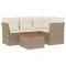 Salon de jardin avec coussins 5 pcs beige résine tresséeCet ensemble de canapés de jardin est le complément parfait de votre arrière-cour, terrasse ou patio, offrant un espace confortable et accueillant pour discuter avec la famille et les amis ou simplement se détendre et profiter de l'extérieur. Matériau durable : la résine tressée, également connue sous le nom de poly rotin, est un matériau synthétique solide et nécessitant peu d'entretien qui ressemble au rotin naturel. Il est léger, facile à nettoyer et couramment utilisé pour les meubles d'extérieur en raison de sa durabilité et de ses propriétés de résistance aux intempéries.Fonction de rangement avec sac résistant à l'eau : chaque siège de jardin dispose d'un espace de rangement sous l'assise, complété par un sac résistant à l'eau pour ranger les coussins, les jouets et d'autres objets. Les sacs intérieurs sont dotés d'un couvercle et peuvent être solidement fixés aux sièges à l'aide de bandes auto-agrippantes pour plus de stabilité.Dessus stable et facile à nettoyer : cette table de jardin a un dessus en bois d'acacia robuste, durable et facile à nettoyer avec un chiffon humide.Housse amovible et lavable : ces coussins de siège sont dotés de housses amovibles pour un lavage et un entretien faciles.Conception modulaire : cet ensemble de meubles d'extérieur a une conception modulaire, ce qui le rend complètement flexible et facile à déplacer, afin que vous puissiez créer un agencement de meubles d'extérieur personnalisé. Bon à savoir :Pour que vos meubles d'extérieur restent beaux, nous vous recommandons de les protéger avec une housse imperméable.