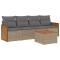 Salon de jardin avec coussins 5 pcs beige résine tresséeCet ensemble de canapés de jardin est le complément parfait de votre arrière-cour, terrasse ou patio, offrant un espace confortable et accueillant pour discuter avec la famille et les amis ou simplement se détendre et profiter de l'extérieur. Matériau durable : la résine tressée, également connue sous le nom de poly rotin, est un matériau synthétique solide et nécessitant peu d'entretien qui ressemble au rotin naturel. Il est léger, facile à nettoyer et couramment utilisé pour les meubles d'extérieur en raison de sa durabilité et de ses propriétés de résistance aux intempéries.Fonction de rangement avec sac résistant à l'eau : le mobilier de jardin dispose d'un espace de rangement sous l'assise, complété par un sac résistant à l'eau pour ranger coussins, jouets et autres objets. Le sac intérieur peut être solidement fixé au mobilier d'extérieur grâce à des attaches auto-agrippantes pour plus de stabilité.Dessus stable et facile à nettoyer : cette table de jardin a un dessus en bois d'acacia robuste, durable et facile à nettoyer avec un chiffon humide.Housse amovible et lavable : ces coussins de siège sont dotés de housses amovibles pour un lavage et un entretien faciles.Conception modulaire : cet ensemble de meubles d'extérieur a une conception modulaire, ce qui le rend complètement flexible et facile à déplacer, afin que vous puissiez créer un agencement de meubles d'extérieur personnalisé. Bon à savoir :Pour que vos meubles d'extérieur restent beaux, nous vous recommandons de les protéger avec une housse imperméable.