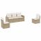 Salon de jardin avec coussins 5 pcs beige résine tresséeCet ensemble de canapés de jardin est le complément parfait de votre arrière-cour, terrasse ou patio, offrant un espace confortable et accueillant pour discuter avec la famille et les amis ou simplement se détendre et profiter de l'extérieur. Matériau durable : la résine tressée, également connue sous le nom de poly rotin, est un matériau synthétique solide et nécessitant peu d'entretien qui ressemble au rotin naturel. Il est léger, facile à nettoyer et couramment utilisé pour les meubles d'extérieur en raison de sa durabilité et de ses propriétés de résistance aux intempéries. Fonction de rangement avec sac résistant à l'eau : chaque siège de jardin dispose d'un espace de rangement sous l'assise, complété par un sac résistant à l'eau pour ranger les coussins, les jouets et d'autres objets. Les sacs intérieurs sont dotés d'un couvercle et peuvent être solidement fixés aux sièges à l'aide de bandes auto-agrippantes pour plus de stabilité. Expérience d'assise confortable : ce mobilier d'extérieur, doté de coussins épais, offre une expérience d'assise confortable. Housse amovible et lavable : ces coussins de siège sont dotés de housses amovibles pour un lavage et un entretien faciles. Conception modulaire : cet ensemble de meubles d'extérieur a une conception modulaire, ce qui le rend complètement flexible et facile à déplacer, afin que vous puissiez créer un agencement de meubles d'extérieur personnalisé. Bon à savoir : Pour que vos meubles d'extérieur restent beaux, nous vous recommandons de les protéger avec une housse imperméable. ,
