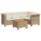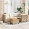 Salon de jardin avec coussins 5 pcs beige résine tresséeCet ensemble de canapés de jardin est le complément parfait de votre arrière-cour, terrasse ou patio, offrant un espace confortable et accueillant pour discuter avec la famille et les amis ou simplement se détendre et profiter de l'extérieur. Matériau durable : la résine tressée, également connue sous le nom de poly rotin, est un matériau synthétique solide et nécessitant peu d'entretien qui ressemble au rotin naturel. Elle est légère, facile à nettoyer et couramment utilisée pour les meubles d'extérieur en raison de sa durabilité et de ses propriétés de résistance aux intempéries.Expérience d'assise confortable : ce mobilier d'extérieur, doté de coussins épais, offre une expérience d'assise confortable.Housse amovible et lavable : ces coussins de siège sont dotés de housses amovibles pour un lavage et un entretien faciles.Dessus stable et facile à nettoyer : cette table de jardin a un dessus en bois d'acacia robuste, durable et facile à nettoyer avec un chiffon humide.Conception modulaire : cet ensemble de meubles d'extérieur a une conception modulaire, ce qui le rend complètement flexible et facile à déplacer, afin que vous puissiez créer un agencement de meubles d'extérieur personnalisé. Bon à savoir :Pour que vos meubles d'extérieur restent beaux, nous vous recommandons de les protéger avec une housse imperméable. Maximum 110 kg par siège. Soyez conscient du risque de feu ouvert et d'autres sources de forte chaleur à proximité de l'appareil.