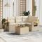 Salon de jardin avec coussins 5 pcs beige résine tresséeCet ensemble de canapés de jardin est le complément parfait de votre arrière-cour, terrasse ou patio, offrant un espace confortable et accueillant pour discuter avec la famille et les amis ou simplement se détendre et profiter de l'extérieur. Matériau durable : la résine tressée, également connue sous le nom de poly rotin, est un matériau synthétique solide et nécessitant peu d'entretien qui ressemble au rotin naturel. Il est léger, facile à nettoyer et couramment utilisé pour les meubles d'extérieur en raison de sa durabilité et de ses propriétés de résistance aux intempéries.Fonction de rangement avec sac résistant à l'eau : le mobilier de jardin dispose d'un espace de rangement sous l'assise, complété par un sac résistant à l'eau pour ranger coussins, jouets et autres objets. Le sac intérieur peut être solidement fixé au mobilier d'extérieur grâce à des attaches auto-agrippantes pour plus de stabilité.Table d'appoint pratique : ce mobilier d'extérieur comprend une table d'appoint pliable avec un ressort à gaz sur les accoudoirs, offrant un endroit pratique pour garder vos essentiels à portée de main.Housse amovible et lavable : ces coussins de siège sont dotés de housses amovibles pour un lavage et un entretien faciles.Conception modulaire : cet ensemble de meubles d'extérieur a une conception modulaire, ce qui le rend complètement flexible et facile à déplacer, afin que vous puissiez créer un agencement de meubles d'extérieur personnalisé. Bon à savoir :Pour que vos meubles d'extérieur restent beaux, nous vous recommandons de les protéger avec une housse imperméable.