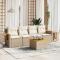 Salon de jardin avec coussins 5 pcs beige résine tresséeCet ensemble de canapés de jardin est le complément parfait de votre arrière-cour, terrasse ou patio, offrant un espace confortable et accueillant pour discuter avec la famille et les amis ou simplement se détendre et profiter de l'extérieur. Matériau durable : la résine tressée, également connue sous le nom de poly rotin, est un matériau synthétique solide et nécessitant peu d'entretien qui ressemble au rotin naturel. Il est léger, facile à nettoyer et couramment utilisé pour les meubles d'extérieur en raison de sa durabilité et de ses propriétés de résistance aux intempéries.Dessus stable et facile à nettoyer : cette table de jardin a un dessus en bois d'acacia robuste, durable et facile à nettoyer avec un chiffon humide.Table d'appoint pratique : ce mobilier d'extérieur comprend une table d'appoint pliable avec un ressort à gaz sur les accoudoirs, offrant un endroit pratique pour garder vos essentiels à portée de main.Housse amovible et lavable : ces coussins de siège sont dotés de housses amovibles pour un lavage et un entretien faciles.Conception modulaire : cet ensemble de meubles d'extérieur a une conception modulaire, ce qui le rend complètement flexible et facile à déplacer, afin que vous puissiez créer un agencement de meubles d'extérieur personnalisé. Bon à savoir :Pour que vos meubles d'extérieur restent beaux, nous vous recommandons de les protéger avec une housse imperméable.