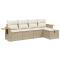 Salon de jardin avec coussins 5 pcs beige résine tresséeCet ensemble de canapés de jardin est le complément parfait de votre arrière-cour, terrasse ou patio, offrant un espace confortable et accueillant pour discuter avec la famille et les amis ou simplement se détendre et profiter de l'extérieur. Matériau durable : la résine tressée, également connue sous le nom de poly rotin, est un matériau synthétique solide et nécessitant peu d'entretien qui ressemble au rotin naturel. Il est léger, facile à nettoyer et couramment utilisé pour les meubles d'extérieur en raison de sa durabilité et de ses propriétés de résistance aux intempéries.Expérience d'assise confortable : ce mobilier d'extérieur, doté de coussins épais, offre une expérience d'assise confortable.Housse amovible et lavable : ces coussins de siège sont dotés de housses amovibles pour un lavage et un entretien faciles.Cadre robuste et stable : le cadre en acier enduit de poudre assure la solidité et la stabilité du meuble de jardin pour une utilisation quotidienne à l'extérieur.Conception modulaire : cet ensemble de meubles d'extérieur a une conception modulaire, ce qui le rend complètement flexible et facile à déplacer, afin que vous puissiez créer un agencement de meubles d'extérieur personnalisé. Bon à savoir :Pour que vos meubles d'extérieur restent beaux, nous vous recommandons de les protéger avec une housse imperméable.