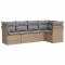 Salon de jardin avec coussins 5 pcs beige résine tresséeCet ensemble de canapés de jardin est le complément parfait de votre arrière-cour, terrasse ou patio, offrant un espace confortable et accueillant pour discuter avec la famille et les amis ou simplement se détendre et profiter de l'extérieur. Matériau durable : la résine tressée, également connue sous le nom de poly rotin, est un matériau synthétique solide et nécessitant peu d'entretien qui ressemble au rotin naturel. Il est léger, facile à nettoyer et couramment utilisé pour les meubles d'extérieur en raison de sa durabilité et de ses propriétés de résistance aux intempéries.Fonction de rangement avec sac résistant à l'eau : chaque siège de jardin dispose d'un espace de rangement sous l'assise, complété par un sac résistant à l'eau pour ranger les coussins, les jouets et d'autres objets. Les sacs intérieurs sont dotés d'un couvercle et peuvent être solidement fixés aux sièges à l'aide de bandes auto-agrippantes pour plus de stabilité.Housse amovible et lavable : ces coussins de siège sont dotés de housses amovibles pour un lavage et un entretien faciles.Conception modulaire : cet ensemble de meubles d'extérieur a une conception modulaire, ce qui le rend complètement flexible et facile à déplacer, afin que vous puissiez créer un agencement de meubles d'extérieur personnalisé. Bon à savoir :Pour que vos meubles d'extérieur restent beaux, nous vous recommandons de les protéger avec une housse imperméable.