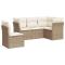 Salon de jardin avec coussins 5 pcs beige résine tresséeCet ensemble de canapés de jardin est le complément parfait de votre arrière-cour, terrasse ou patio, offrant un espace confortable et accueillant pour discuter avec la famille et les amis ou simplement se détendre et profiter de l'extérieur. Matériau durable : la résine tressée, également connue sous le nom de poly rotin, est un matériau synthétique solide et nécessitant peu d'entretien qui ressemble au rotin naturel. Il est léger, facile à nettoyer et couramment utilisé pour les meubles d'extérieur en raison de sa durabilité et de ses propriétés de résistance aux intempéries.Fonction de rangement avec sac résistant à l'eau : chaque siège de jardin dispose d'un espace de rangement sous l'assise, complété par un sac résistant à l'eau pour ranger les coussins, les jouets et d'autres objets. Les sacs intérieurs sont dotés d'un couvercle et peuvent être solidement fixés aux sièges à l'aide de bandes auto-agrippantes pour plus de stabilité.Housse amovible et lavable : ces coussins de siège sont dotés de housses amovibles pour un lavage et un entretien faciles.Conception modulaire : cet ensemble de meubles d'extérieur a une conception modulaire, ce qui le rend complètement flexible et facile à déplacer, afin que vous puissiez créer un agencement de meubles d'extérieur personnalisé. Bon à savoir :Pour que vos meubles d'extérieur restent beaux, nous vous recommandons de les protéger avec une housse imperméable.