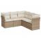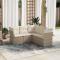 Salon de jardin avec coussins 5 pcs beige résine tresséeCet ensemble de canapés de jardin est le complément parfait de votre arrière-cour, terrasse ou patio, offrant un espace confortable et accueillant pour discuter avec la famille et les amis ou simplement se détendre et profiter de l'extérieur. Matériau durable : la résine tressée, également connue sous le nom de poly rotin, est un matériau synthétique solide et nécessitant peu d'entretien qui ressemble au rotin naturel. Il est léger, facile à nettoyer et couramment utilisé pour les meubles d'extérieur en raison de sa durabilité et de ses propriétés de résistance aux intempéries.Fonction de rangement avec sac résistant à l'eau : chaque siège de jardin dispose d'un espace de rangement sous l'assise, complété par un sac résistant à l'eau pour ranger les coussins, les jouets et d'autres objets. Les sacs intérieurs sont dotés d'un couvercle et peuvent être solidement fixés aux sièges à l'aide de bandes auto-agrippantes pour plus de stabilité.Housse amovible et lavable : ces coussins de siège sont dotés de housses amovibles pour un lavage et un entretien faciles.Conception modulaire : cet ensemble de meubles d'extérieur a une conception modulaire, ce qui le rend complètement flexible et facile à déplacer, afin que vous puissiez créer un agencement de meubles d'extérieur personnalisé. Bon à savoir :Pour que vos meubles d'extérieur restent beaux, nous vous recommandons de les protéger avec une housse imperméable.