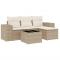 Salon de jardin avec coussins 5 pcs beige résine tresséeCet ensemble de canapés de jardin est le complément parfait de votre arrière-cour, terrasse ou patio, offrant un espace confortable et accueillant pour discuter avec la famille et les amis ou simplement se détendre et profiter de l'extérieur. Matériau durable : la résine tressée, également connue sous le nom de poly rotin, est un matériau synthétique solide et nécessitant peu d'entretien qui ressemble au rotin naturel. Il est léger, facile à nettoyer et couramment utilisé pour les meubles d'extérieur en raison de sa durabilité et de ses propriétés de résistance aux intempéries.Fonction de rangement avec sac résistant à l'eau : le mobilier de jardin dispose d'un espace de rangement sous l'assise, complété par un sac résistant à l'eau pour ranger coussins, jouets et autres objets. Le sac intérieur peut être solidement fixé au mobilier d'extérieur grâce à des attaches auto-agrippantes pour plus de stabilité.Dessus en verre : le dessus de la table d'extérieur est fabriqué en verre trempé solide et durable, ce qui le rend facile à nettoyer avec un chiffon humide et ajoute une touche d'élégance à votre espace extérieur.Housse amovible et lavable : ces coussins de siège sont dotés de housses amovibles pour un lavage et un entretien faciles.Conception modulaire : cet ensemble de meubles d'extérieur a une conception modulaire, ce qui le rend complètement flexible et facile à déplacer, afin que vous puissiez créer un agencement de meubles d'extérieur personnalisé. Bon à savoir :Pour que vos meubles d'extérieur restent beaux, nous vous recommandons de les protéger avec une housse imperméable.