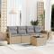 Salon de jardin avec coussins 5 pcs beige résine tresséeCet ensemble de canapés de jardin est le complément parfait de votre arrière-cour, terrasse ou patio, offrant un espace confortable et accueillant pour discuter avec la famille et les amis ou simplement se détendre et profiter de l'extérieur. Matériau durable : la résine tressée, également connue sous le nom de poly rotin, est un matériau synthétique solide et nécessitant peu d'entretien qui ressemble au rotin naturel. Il est léger, facile à nettoyer et couramment utilisé pour les meubles d'extérieur en raison de sa durabilité et de ses propriétés de résistance aux intempéries.Fonction de rangement avec sac résistant à l'eau : le mobilier de jardin dispose d'un espace de rangement sous l'assise, complété par un sac résistant à l'eau pour ranger coussins, jouets et autres objets. Le sac intérieur peut être solidement fixé au mobilier d'extérieur grâce à des attaches auto-agrippantes pour plus de stabilité.Table d'appoint pratique : ce mobilier d'extérieur comprend une table d'appoint pliable avec un ressort à gaz sur les accoudoirs, offrant un endroit pratique pour garder vos essentiels à portée de main.Housse amovible et lavable : ces coussins de siège sont dotés de housses amovibles pour un lavage et un entretien faciles.Conception modulaire : cet ensemble de meubles d'extérieur a une conception modulaire, ce qui le rend complètement flexible et facile à déplacer, afin que vous puissiez créer un agencement de meubles d'extérieur personnalisé. Bon à savoir :Pour que vos meubles d'extérieur restent beaux, nous vous recommandons de les protéger avec une housse imperméable.